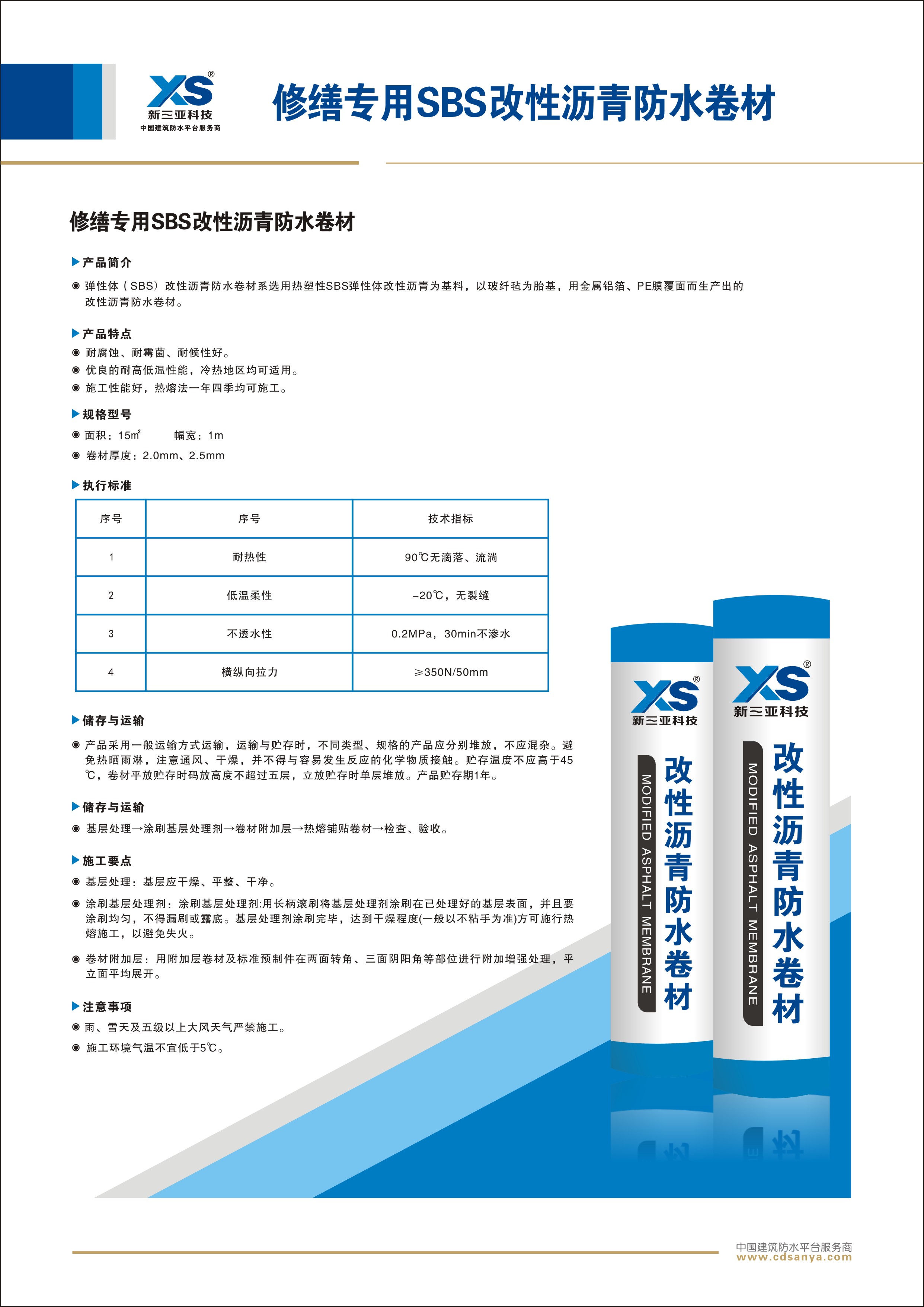 修繕專用SBS改性瀝青防水卷材,選用彈性體(SBS)改性瀝青為基料使用玻纖氈為胎基,并上、下表面覆PE膜而生產(chǎn)出的改性瀝青防水卷材。